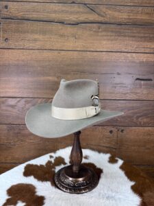 Hatband is Bone w/greybelly center and feathers to accent it