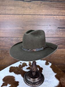 Brim Width & Shape: Brim is 3 1/4″ flat packer with pencil roll on the sides