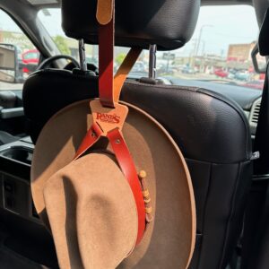 Get your very own Rand’s Custom Hat Hauler made from leather in a medium Brown color