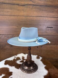 Product: A beaver blend Drover in Powder Blue