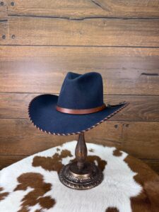 Hatband: 1/2″ brown leather w/turqoiuse accent